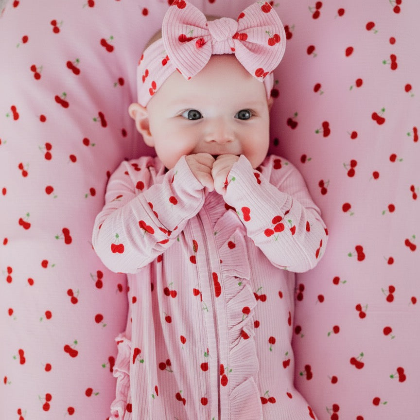 Very Cherry | Ribbed One Piece Ruffle Footie Pajama