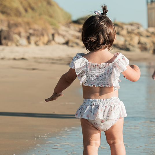 •    Two-piece swimsuit with soft ruffle detailing